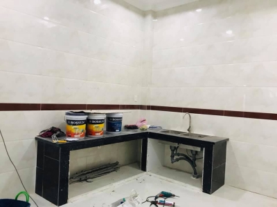 Dự án thi công sơn dãy nhà trọn gói tại khu Vĩnh Lộc sử dụng hệ thống sơn BOSSUN ngoại thất, nội thất và bột trét cao cấp với ưu điểm chống thấm tốt, bền màu 8 năm.
