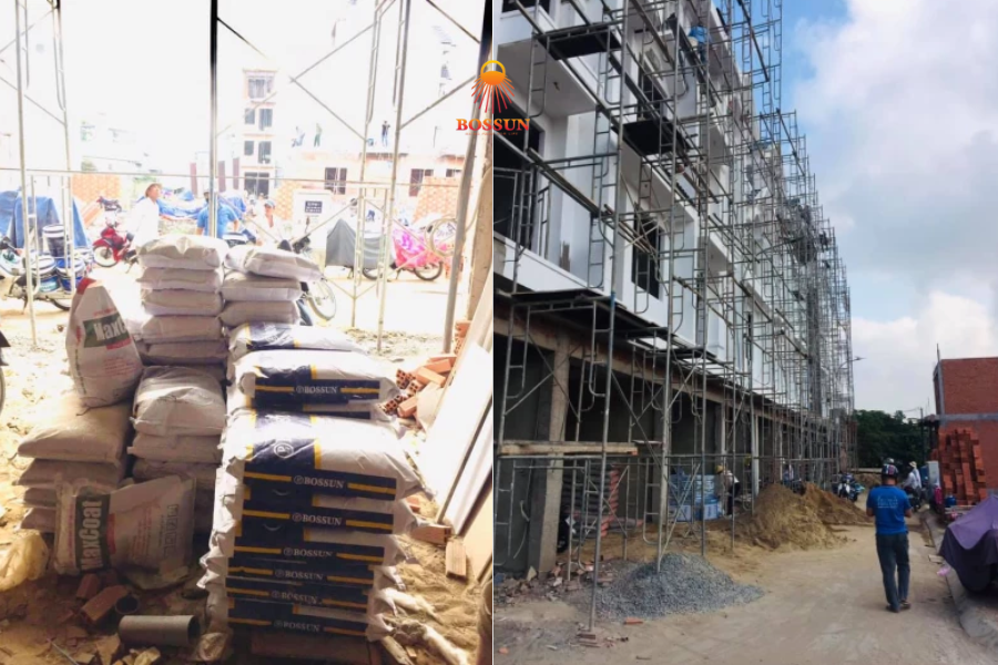 Lớp nền đóng vai trò cực kỳ quan trọng trong quy trình thi công sơn dãy nhà. Bột trét ngoại thất BOSSUN được đánh giá cao bởi: