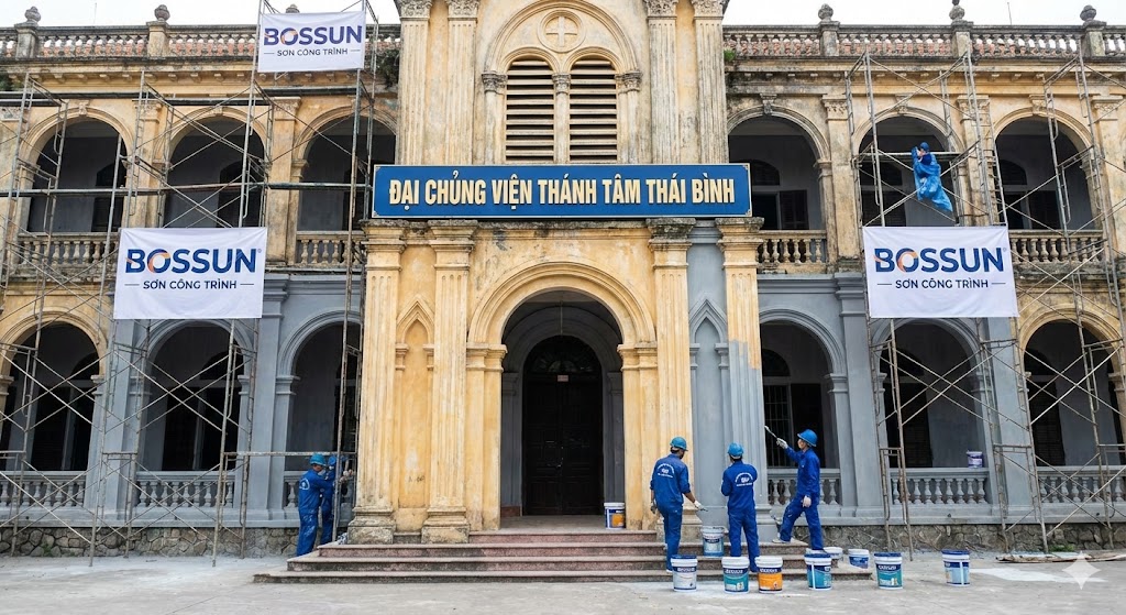 Các công trình kiến trúc tôn giáo lớn như Đại Chủng Viện Thánh Tâm Thái Bình luôn đòi hỏi những tiêu chuẩn khắt khe về thẩm mỹ và độ bền vững. BOSSUN tự hào được lựa chọn là đối tác tin cậy, mang đến giải pháp thi công sơn công trình toàn diện, góp phần tạo nên vẻ đẹp đẳng cấp và trường tồn cho không gian tâm linh quan trọng này.